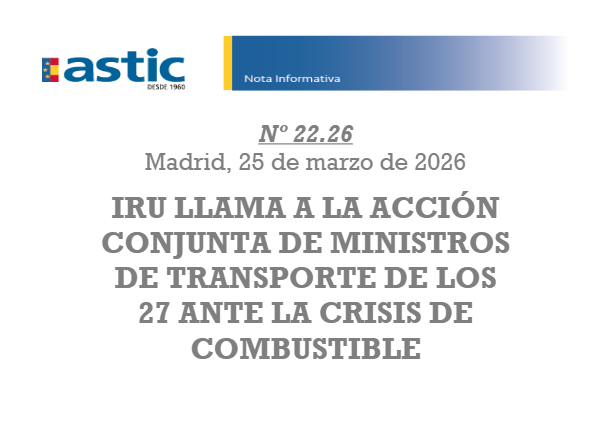 N.I. 22.26 IRU llama a la acción conjunta de ministros de transporte de los 27 ante la crisis de combustible