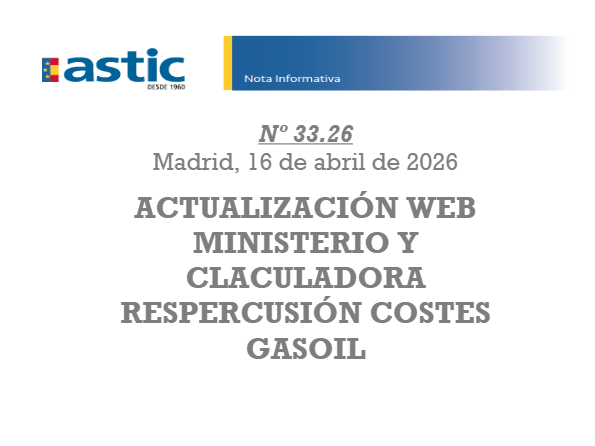 N.I. 33.26 Actualización web Ministerio y calculadora repercusión costes gasoil