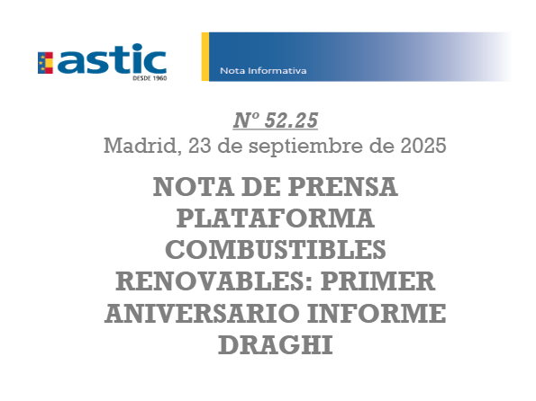 N.I. 52.25 Nota de Prensa Plataforma Combustibles Renovables; primer aniversario del Informe Draghi